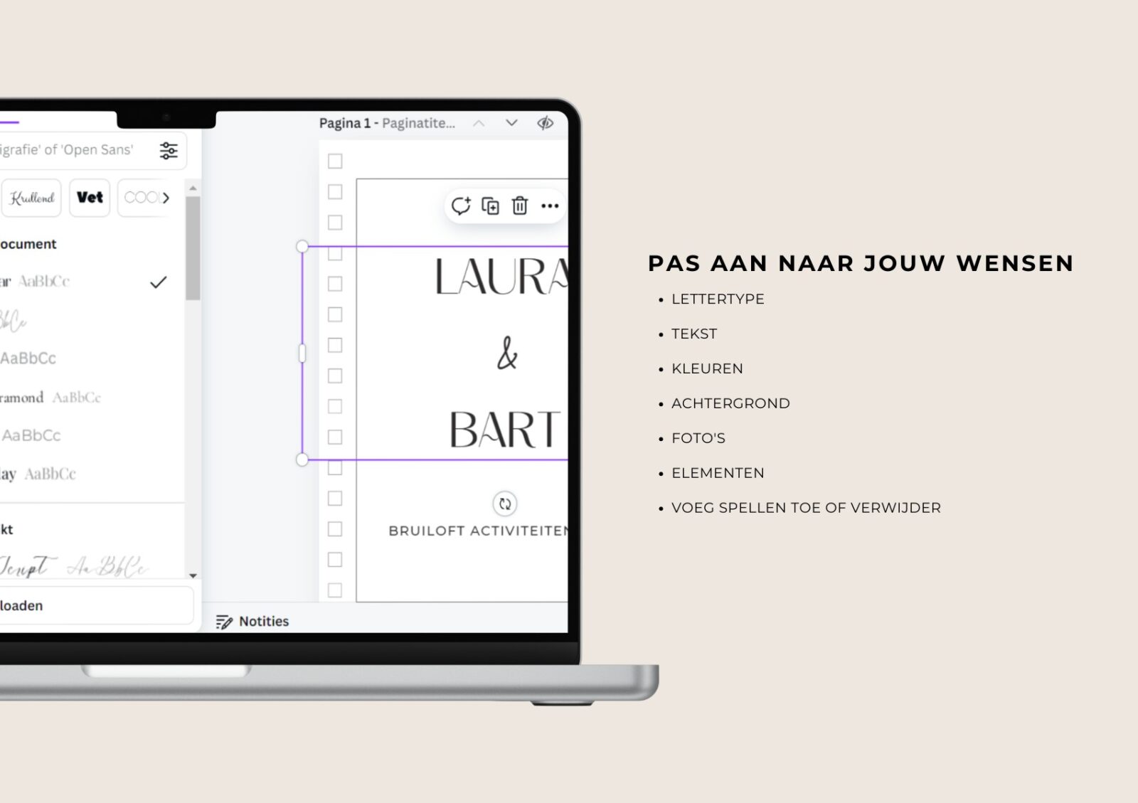 Mocht je geen interesse of tijd hebben in hebben in het zelf ontwerpen van je bruiloft activiteitenboek, dan kun je het ook kant-en-klaar bij ons kopen. Klik hier om te bestellen.