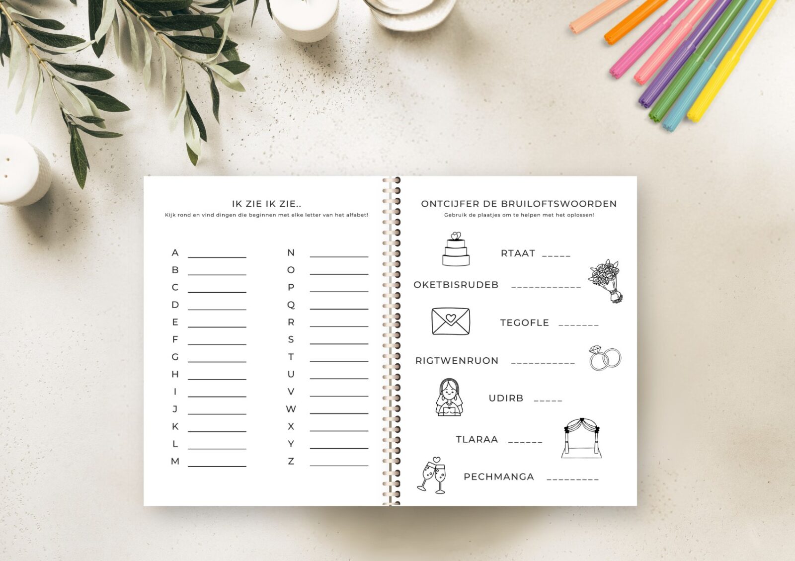 Dit activiteitenboek zit vol met leuke en interactieve spelletjes die de kinderen op jouw bruiloft zeker zullen vermaken.