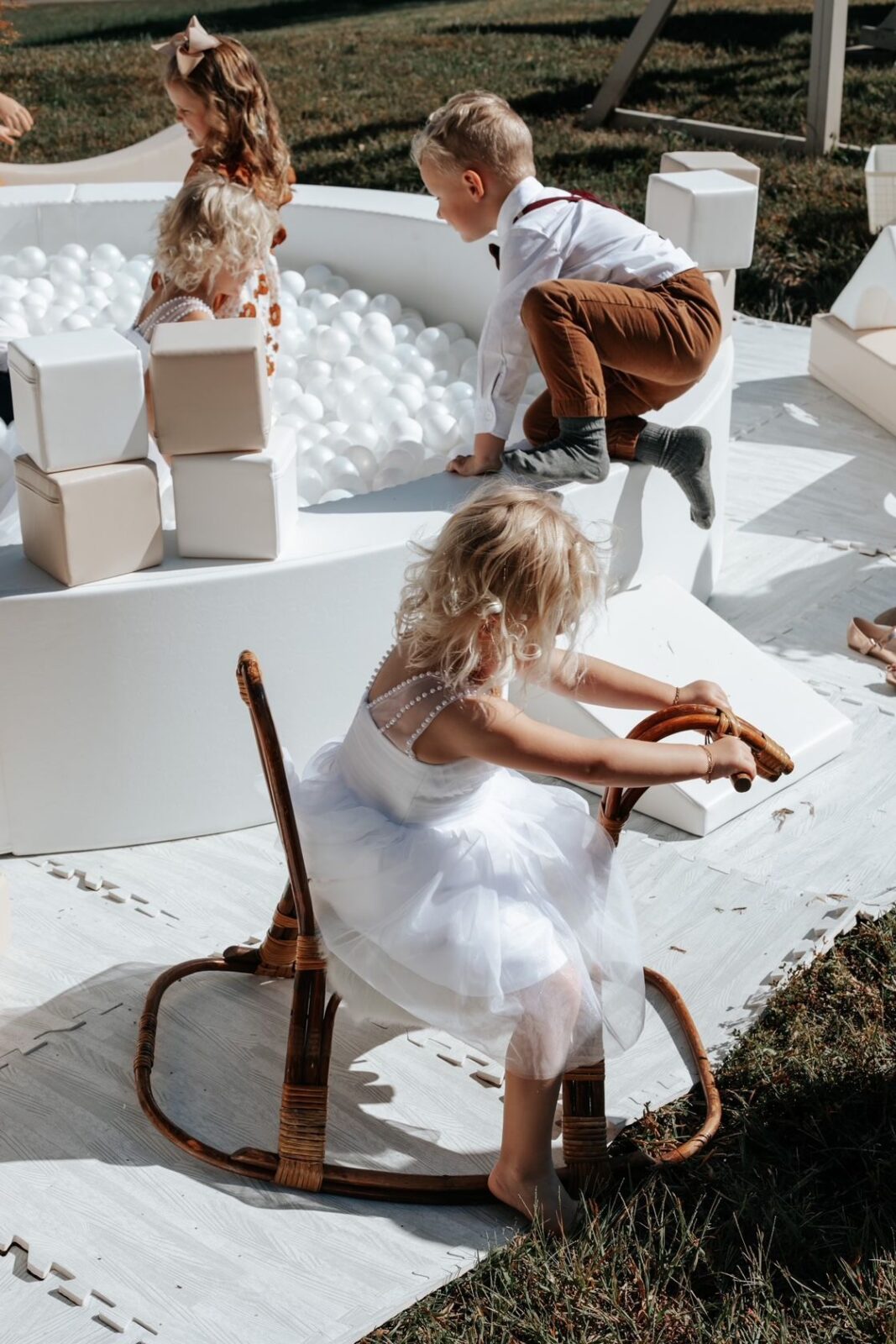 Tijdens de ceremonie of speeches kunnen kinderen (hoe lief ook) voor afleiding zorgen. Vooral bij kleine, intieme bruiloften wil je die momenten soms rustig houden.