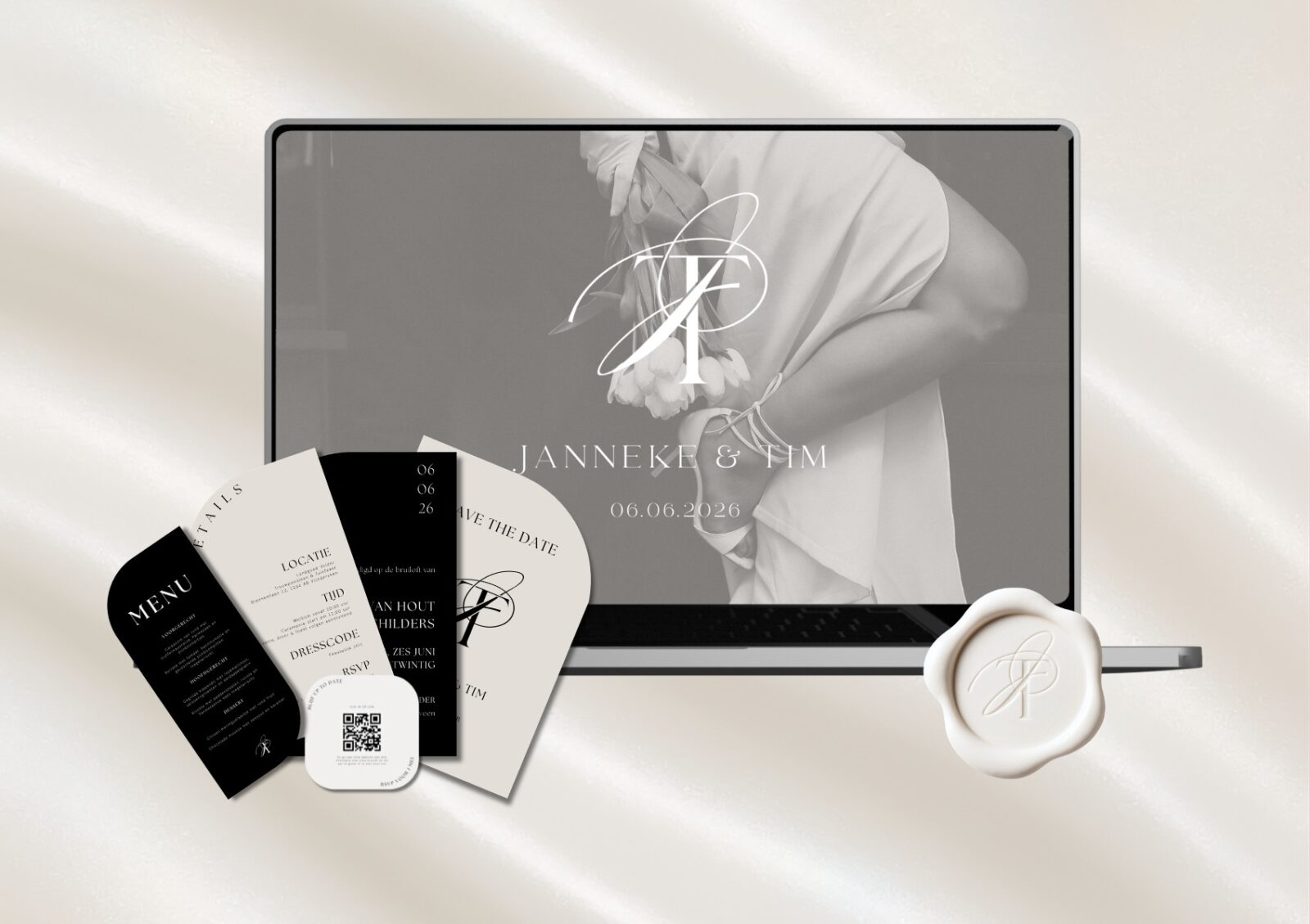 Je eigen trouwlogo, trouwkaarten én trouwwebsite in een trouwdesign bundel.