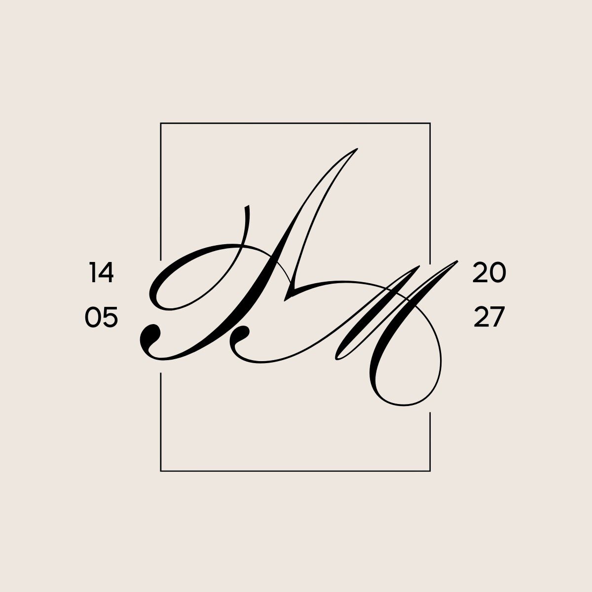 Amanda & Martijn kozen voor een trouwlogo met een klassieke uitstraling. Hun initialen zijn uitgewerkt in een sierlijke typografie, omlijst met een kader en aangevuld met hun trouwdatum.Â