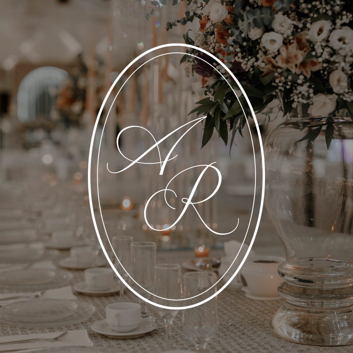 Rosa & Alexander kozen voor een tijdloos monogram waarin hun initialen samenkomen in een elegante omlijsting. Het ovale kader geeft het ontwerp een klassieke uitstraling, terwijl de verfijnde lijnen van de letters zorgen voor een moderne balans.